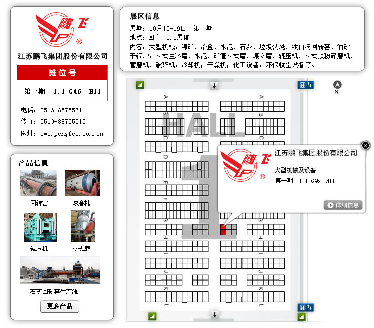 江蘇鵬飛集團在廣交會上精心布置展位,印發各類設備的介紹手冊,整體模型展示水泥生產線產品,委派具有多年工作經驗的銷售、技術、售后等專業人員為顧客詳細介紹新產品、新技術,全面分析解答各類設備從購買到投產使用以及售后服務等每個環節的問題,為您排疑解難,與您達成共識。同時,也希望能和更多的國內外公司加強聯系,互相合作,為客戶提供更加完美的產品。