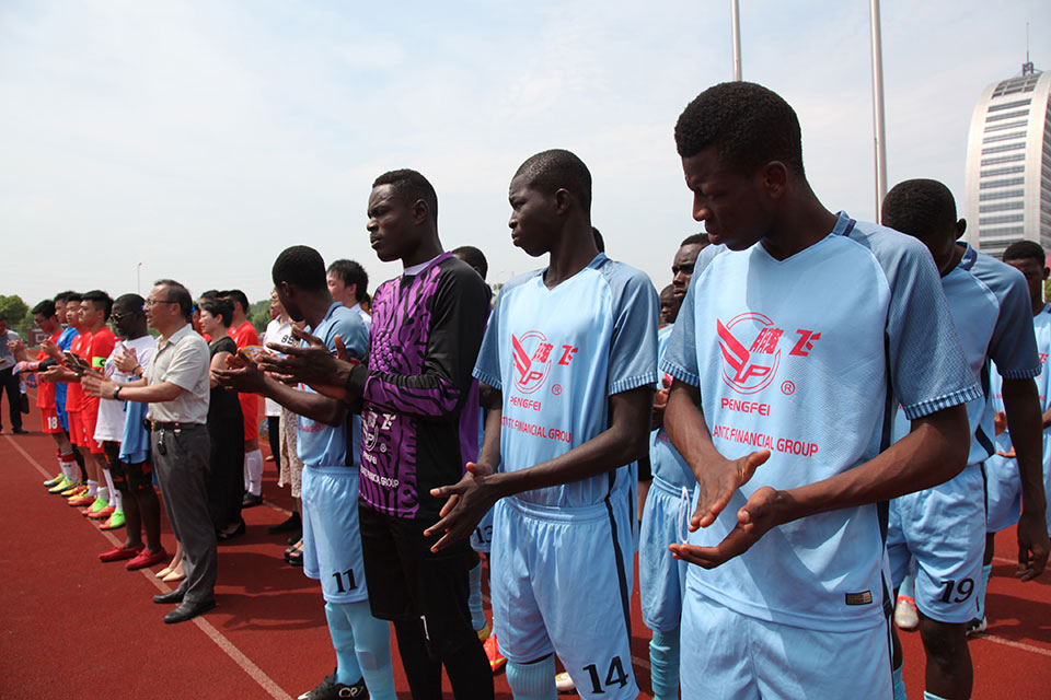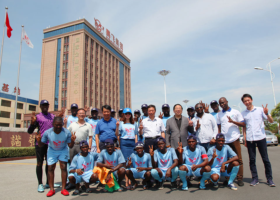 恰逢江蘇鵬飛集團與*達成建設年產(chǎn)100萬噸水泥粉磨站項目合同,應江蘇鵬飛集團的邀請,7月15日*U17隊來到海安,并在海安城南實驗中學與我縣教育聯(lián)隊舉行一場國際足球友誼賽,本次比賽由江蘇鵬飛集團全程贊助。時值盛夏,天氣炎熱,但一點也不影響比賽的順利進行,球員的激情和觀眾的熱情充盈整個賽場,場面和諧融洽,雖為比賽,實則是相互交流學習,充分發(fā)揮了友誼第一,比賽第二的精神。此次友誼賽是我縣本土球隊首次與國際球隊接洽,在比賽中也讓我縣教育聯(lián)隊受益匪淺、感觸頗深,對今后青少年校園足球教育大有裨益。比賽結(jié)束后,董事長王家安帶領*U17足球隊員參觀了鵬飛集團生產(chǎn)基地,并舉行座談及饋贈禮品,簡單的一場足球賽,卻為譜寫中非友誼添上實實在在的一筆。