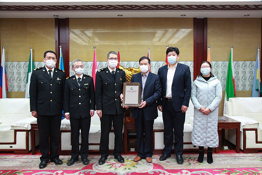 南通海關海安辦事處開關以來,服務企業加快走出去步伐,拓展國際市場發展空間,為海安架起了一座通往世界的橋梁,有力支持海安企業融入一帶一路建設,加快海安產業升級。2021年1月19日南通海關駐海安辦事處主任楊占臣等一行專程到鵬飛頒發高級認證企業證書。