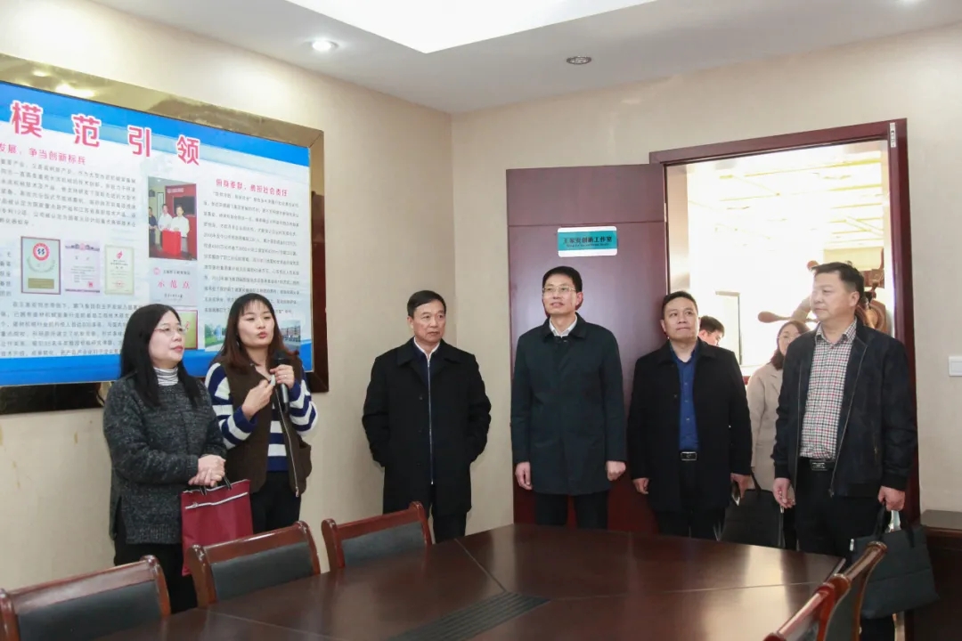 施偉慧一行參觀了王家安勞模創(chuàng)新工作室。公司董事長(zhǎng)王家安表示,創(chuàng)新工作室成立于2007年,現(xiàn)有成員19人。工作室圍繞市場(chǎng)需求開展建材、環(huán)保、冶金、化工機(jī)械成套設(shè)備的研發(fā)設(shè)計(jì)、新技術(shù)的運(yùn)用與產(chǎn)品技術(shù)改進(jìn)工作。工作室累計(jì)完成12項(xiàng)國(guó)家、部、省級(jí)新產(chǎn)品開發(fā),獲國(guó)家級(jí)新產(chǎn)品獎(jiǎng)2項(xiàng)、江蘇省首臺(tái)(套)技術(shù)裝備3項(xiàng),獲國(guó)家授予ZL權(quán)30項(xiàng)。