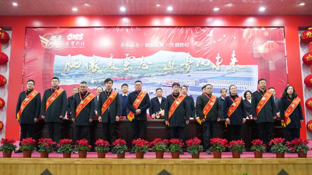 金蛇起舞賀新歲,凝心聚力開新篇。2月2日上午,江蘇鵬飛集團股份有限公司隆重舉行2024年度總結表彰大會。鵬飛集團黨委書記、董事長王家安,總經理施鵬宇,及其他公司高層管理成員、各部門負責人、全體員工等1200余人齊聚一堂,共同見證這一難忘時刻。這不僅是一場表彰大會,更是一次對奮斗與拼搏的致敬,對夢想與未來的展望。