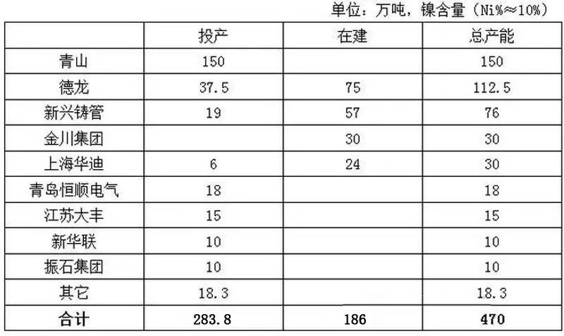 中國鎳冶煉企業項目進展情況