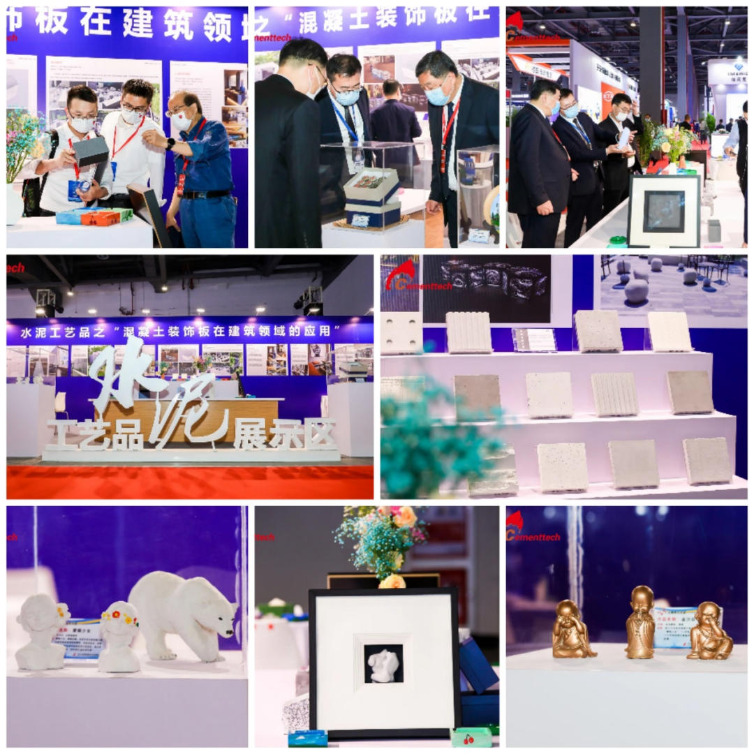 通過創意構圖、手工創作、精雕細琢,水泥也可以成為一件件精準而有溫度的工藝品,此次工藝品展區除了生活家居方面的實用性工藝品,別出心裁充滿生趣的水泥擺件,還有通過圖片及樣板展示的混凝土裝飾板在建筑行業的應用案例,給現場觀眾帶來了全新的水泥文化享受。