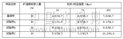 表6  磨細礦渣微粉摻入水泥中的膠砂強度