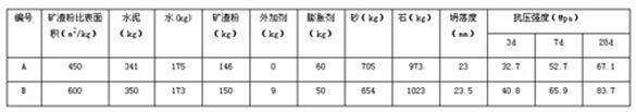 由表6數據可以看出:在含有礦渣配比20%的425礦渣水泥中摻入磨細礦渣微粉取代等量水泥后,水泥的早、后期強度非但沒有降低,反而有顯著的提高,充分說明磨細礦渣微粉具有優良的潛在水硬活性,在水泥生產過程中對改善產品的物理力學性能具有重要意義。近年來,磨細礦渣微粉作為高活性礦物摻合料,已廣泛應用于高性能、高強混凝土,并對其技術機理的研究逐步微觀化、系統化、深入化。不同比表面積磨細礦渣微粉應用于混凝土中的試驗數據見表7: