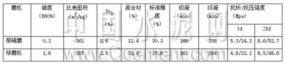 表10  筒輥磨與球磨磨制的水泥性能對比