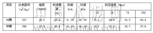 表中數據說明:在凝結時間、標準稠度需水量基本相同的前提下,OK磨磨制的水泥28d抗壓強度比球磨水泥高出15%,同時,水泥的早期強度也高,可進一步增加混合材摻量,降低水泥生產成本。